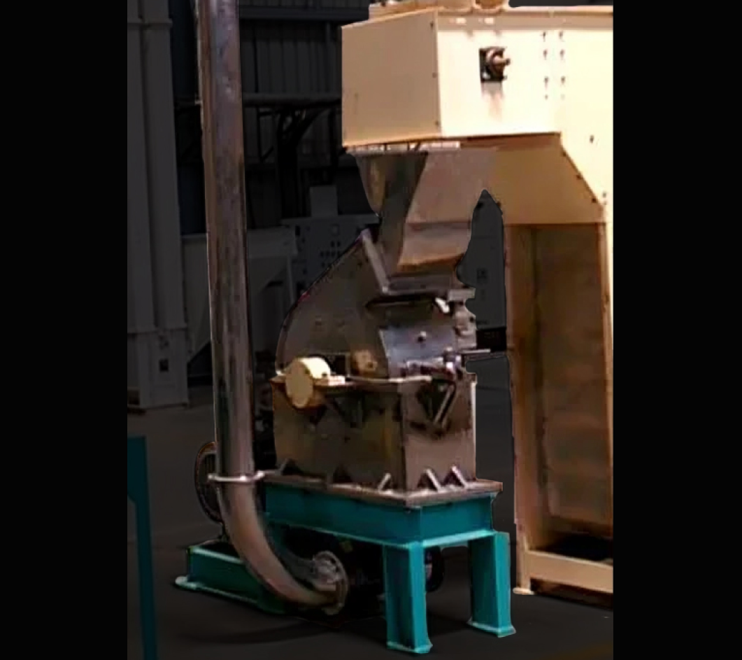 Two types of arrangement exist in the hammer mill; the common one is a horizontal drive shaft, which suspends vertical hammers to crush any friable and fibrous dry materials containing less fat. The other one is the vertical hammer mill where the drive shaft is positioned vertically while screens and hammers are positioned horizontally. Materials successfully reach the screen hole size and are carried by the gravity force outside the mill and then by air or conveyor to storage. Bigger particles, which still escape the size reduction process, are allowed to drop through the mill and may be recycled for size reduction. This facilitates the separation of foreign materials, such as metal and stones, which can cause screen damage.